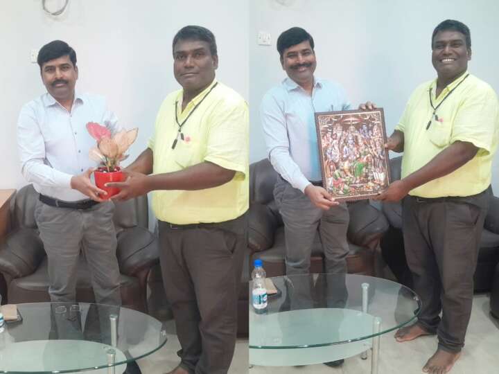 గిరిజన సంక్షేమ శాఖ ఏడీ సర్వేశ్వర రెడ్డిని మర్యాదపూర్వకంగా కలిసిన ఐటిడిఎ గిరిజన సంక్షేమ శాఖ ఉమ్మడి జిల్లాల ఎగ్జిక్యూటివ్ ఇంజనీర్ టీ.మధుకర్.ఈ సందర్భంగా ఒక మొక్కను అందజేసి శుభాకాంక్షలు తెలిపారు.ఆయన మాట్లాడుతూ… ఐటిడిఎ భద్రాచలం పీవో రాహుల్ సూచనలతో అభివృద్ధి పనులు నిర్ణీత సమయంలో పూర్తి చేసేలా ఇంజనీరింగ్ శాఖ అధికారులు కృషి చేస్తున్నారన్నారు.అదేవిధంగా ఇంజనీరింగ్ శాఖ ఎదుర్కొంటున్నారని పలు అంశాలపై ఏడీ సర్వేశ్వర రెడ్డికి విన్నవించారు.ఏజెన్సీ ప్రాంతాలలో గిరిజనులకు సేవలు అందించే ఐటిడిఎ ఇంజనీరింగ్ అధికారులకు కూడా కొత్త కార్యాలయ భవనం,స్టాఫ్ క్వార్టర్స్ మంజూరు చేయాలి అని అడిషనల్ సెక్రటరీని ఆయన కోరారు.