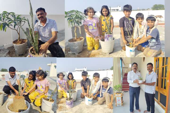 భద్రాద్రి కొత్తగూడెం జిల్లా చుంచుపల్లి మండలం విద్యానగర్ కాలనీలోని దీక్షిత అసోసియేషన్ మేనేజర్ బి.శ్రీనివాస్ నివాసంలో మొక్కలను అందించిన ఏటిఈసి జిల్లా అధ్యక్షుడు బాలు నాయక్. అనంతరం దీక్షిత, రోహిత్ చిన్నారులు మిత్ర బృందం కలిసి మొక్కలు నాటారు. ఇప్పటికీ తన ఇంటి ఆవరణలో మొక్కలు నాటి పర్యావరణ పరిరక్షణ కోసం కృషి చేస్తున్నట్లు ఆయన తెలిపారు.